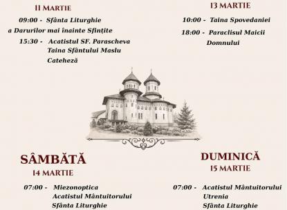 PROGRAM LITURGIC SĂPTĂMÂNA A III- A DIN POSTUl MARE 09- 15.03.2026